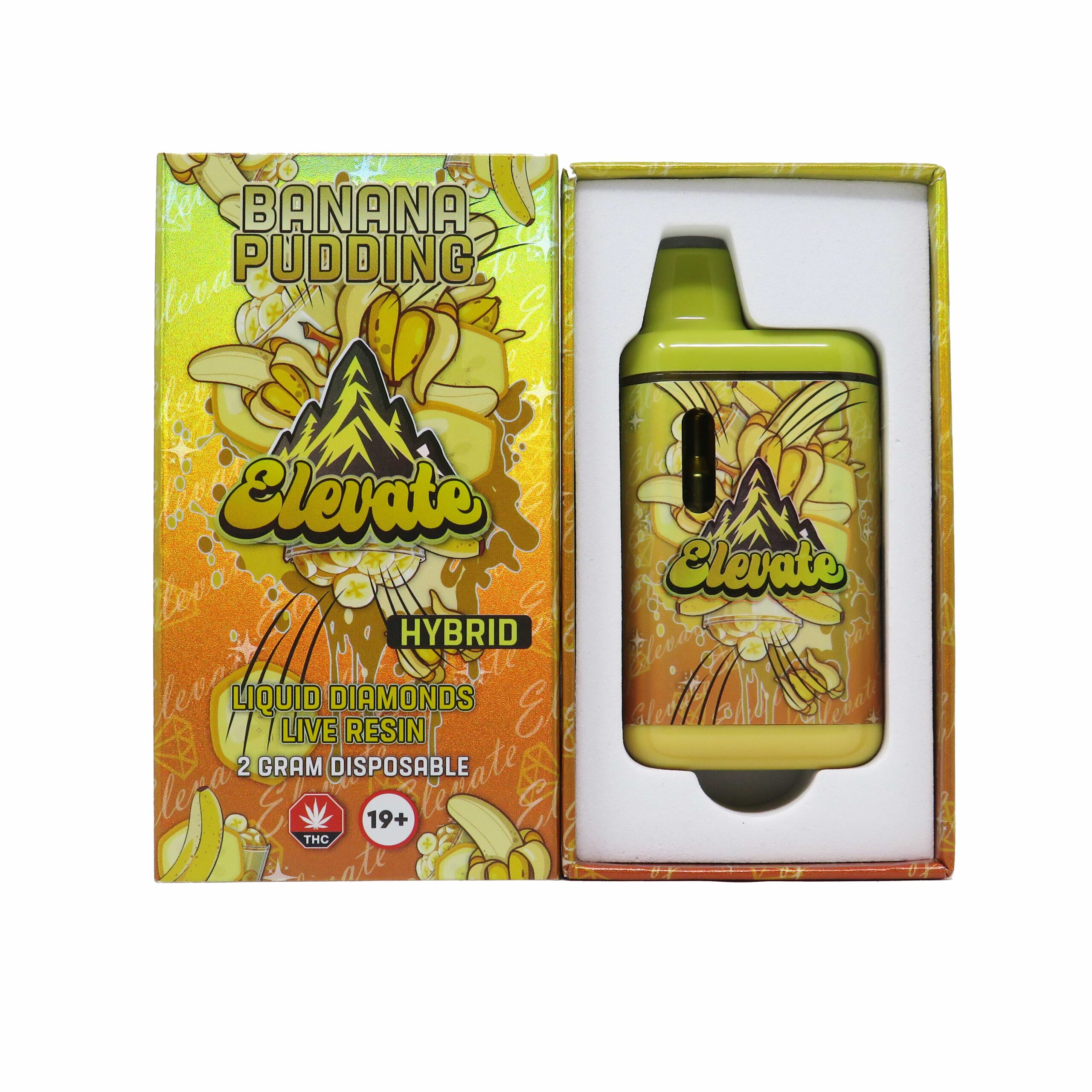 Meet the Elevate Banana Pudding (Hybrid) 2 Gram Vape Pen – Liquid Diamonds And Live Resin — a high-powered fusion of Liquid Diamonds and Live Resin, designed for those who demand more from their vape. Each sleek, disposable pen is packed with 2 grams of ultra-potent extract, combining the crystal-clear intensity of THCa diamonds with the full-spectrum flavor of live resin.
