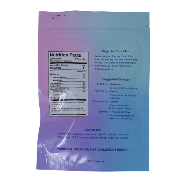 Enhance your journey with Haven Magic Mushroom Gummies, expertly crafted for those who seek a profound, mindful experience. These gummies offer the ideal blend of potency and flavor, providing a smooth, balanced experience that helps you connect deeply with your environment and foster personal introspection. Infused with premium psilocybin, each gummy ensures a precise, consistent dose for a reliable and enjoyable adventure. With their vibrant, fruity taste, they present a delightful way to begin a transformative journey, inviting you to embrace the present moment and explore new levels of awareness.